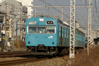 岡山転属回送の103系。ピン甘だ・・・